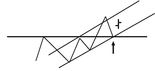 2. После пробития коридора цена за короткий период времени может пройти значимые уровни. В этом случае вхождение в рынок происходит при возврате цены к уровню, полученному при помощи расчета.
