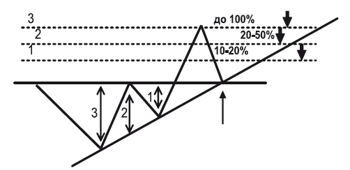 – фигуры классического технического анализа. Это может быть завершающим этапом формирования какой-либо фигуры или отыгранным уровнем предыдущей фигуры;