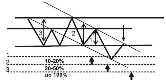 2. Позиции, открытые против основного тренда (короткие продажи), могут закрываться без особых сигналов элементов технического анализа, так как текущая прибыль является относительно неустойчивой и за короткий промежуток времени может перейти в убыток.