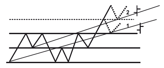 – вспомогательные линии. Построение данных линий требует значительного образного мышления и наличия большого опыта работы. Пересечение данных линий в определенной точке подтверждает и усиливает данный уровень;