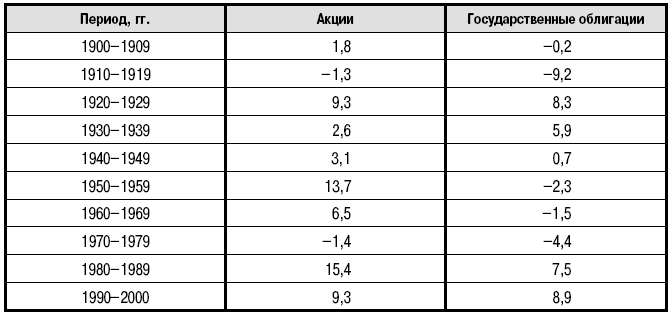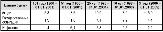 акции: не более 6% за 101 год; не более 11% за 25 лет и 15,4% за лучший период – 10 лет;