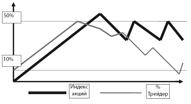 Рис. 7.1. Изменение индекса акций и процента успешности трейдеров
