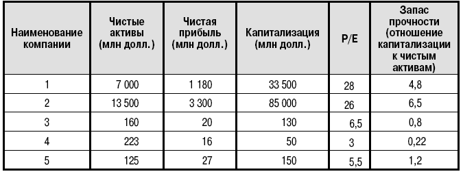 Например, по итогам 2006 г. имеется ряд компаний со следующими финансовыми показателями (табл. 7.5).