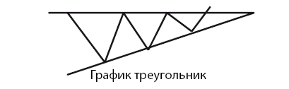 Треугольник – это область консолидации цен, границы которой пересекаются справа. Он может служить признаком разворота или, что случается чаще, продолжением тренда. Рынок стягивается, и энергия игроков сжимается, чтобы потом выплеснуться из треугольника.