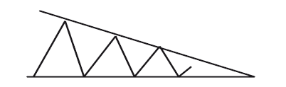 Симметричный треугольник. Верхняя и нижняя линия идут с одинаковым наклоном. Данный треугольник отражает равенство между «быками» и «медведями».
