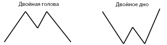 Двойная «голова» образуется, когда цены вновь подскакивают до предыдущего максимального значения. Двойное «дно» – когда цены падают до предыдущего минимального значения. Второй максимум или минимум может быть немного ниже или выше предыдущего.