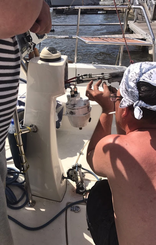 Для диагностики и устранения неисправности был вызван капитан яхты. Почему сразу не продиагностировали сами? А зачем нам диагностировать чужую яхту? Да и какой из нас толк. Мы ведь только первые шаги делаем. Капитан яхты прибыл достаточно быстро, выслушал, покрутил штурвал, заглянул в кормовой трюм и огласил диагноз: «Разболтанный сервомеханизм (управление рулём на яхте было гидравлическим) нужно менять, но его в Калининграде нет и надо заказывать в Польше, но в Польшу никто на этой неделе не поедет и на следующей тоже. Все заняты, все далеко…» в общем, всё для нас очень нерадостно. Покурил, пообщался о чём-то с нашим кэпом и как-то быстро пропал.