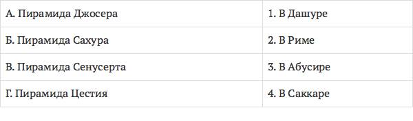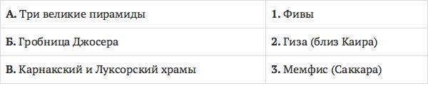 43. Укажите соответствие памятников архитектуры Древнего Египта их месторасположению:
