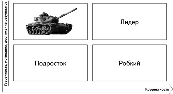 СОЧЕТАНИЕ УВЕРЕННОСТИ И КОРРЕКТНОСТИВместе с Игорем Рызовым, с которым мы написали книгу «Подготовка к “Управленческому поединку” и сложным переговорам»[6], мы разработали модель, характеризующую типы поведения переговорщиков в ситуации прямого противостояния интересов. Модель универсальна, и нашу с ним статью[7] я привожу здесь с небольшой адаптацией к данной книге. А потом прокомментирую, как она соотносится с ведением сложных переговоров с подчиненными.