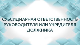 «Субсидиарная ответственность руководителя или учредителя должника»