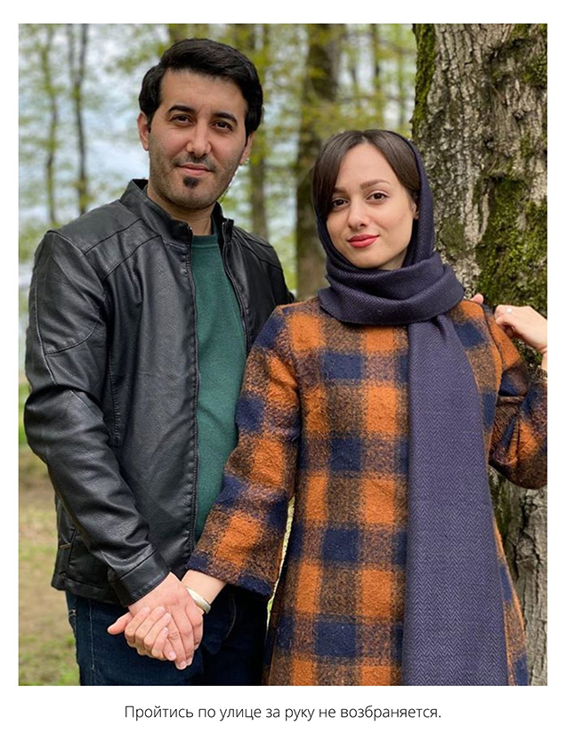 Даже путешествующие вместе муж и жена должны воздерживаться от проявления своих чувств в общественных местах. Позволительно держать друг друга за руки, но чересчур открытое проявление нежных чувств способно привлечь к вам нежелательное внимание стражей закона. Сами иранцы нередко преступают этот закон, но они знают, где и когда можно расслабиться, а вы – нет.