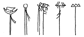 Носители герзейской культуры вели оседлый образ жизни и строили длинные, большие лодки с «каютами». Над каждым судном возвышался отличительный знак, прикрепленный к верхушке установленного вертикально шеста. Позднее некоторые из этих эмблем стали символами определенных территорий, городов или богов (рис. 8). Приведем несколько примеров: