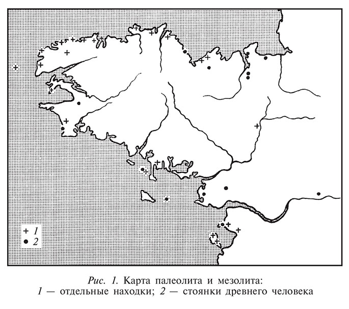 Большинство обнаруженных в Арморике поселений, относящихся к древнему каменному веку, расположены вблизи побережья (рис. 1).