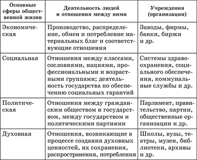 Деление на четыре сферы общественной жизни условно. Можно назвать и другие сферы: наука, художественно-творческая деятельность, расовые, этнические, национальные отношения. Однако именно эти четыре сферы традиционно выделяются как наиболее общие и значимые.