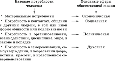 Основанием для разграничения сфер общественной жизни служат базовые потребности человека.