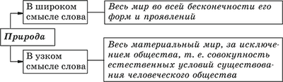 Понятие «природа» употребляется для обозначения не только естественных, но и созданных человеком материальных условий его существования – «второй природы», в той или иной мере преобразованной и сформированной человеком.