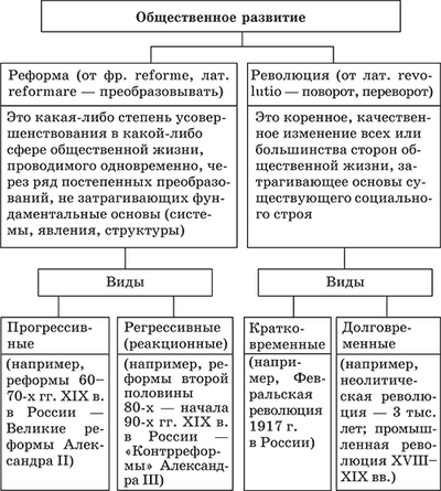 Общественное развитие может носит реформистский или революционный характер.