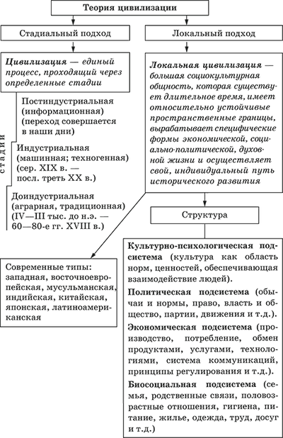 Различными исследователями выделяется множество локальных цивилизаций (например, английский историк, социолог, дипломат, общественный деятель А. Тойнби (1889–1975) насчитывал в истории человечества 21 цивилизацию), которые могут совпадать с границами государств (китайская цивилизация) или охватывать несколько стран (античная, западная). Обычно все многообразие локальных цивилизаций делят на две большие группы – западную и восточную.