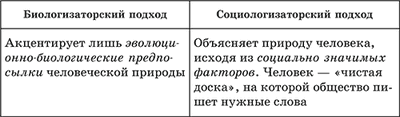 Абсолютизация одной из сторон сущности человека приводит к биологизаторству или социологизаторству.