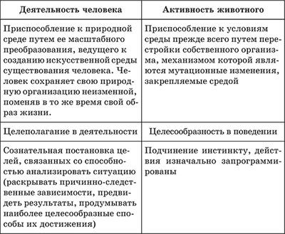 Деятельность человека имеет определенное сходство с активностью животного, но отличается творческо-преобразующим отношением к окружающему миру.