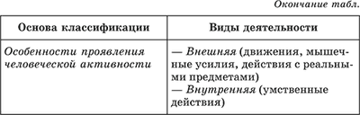 Основные классификации деятельности