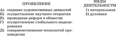 B3. Установите соответствие между видами деятельности и их проявлениями: к каждой позиции, данной в первом столбце, подберите соответствующую позицию из второго столбца.