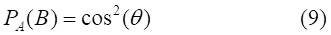 Но этого нельзя сказать о втором измерении. Его результат явно зависит от результата первого измерения. Второе событие (событие В) никогда не наступит, пока не наступит первое! А в чем состоит оно, это второе событие? Правильным следует считать такое определение второго события: «Регистрация второго фотона в + канале регистратора, который повёрнут под углом к первому регистратору при условии, что первый фотон был зарегистрирован в + канале регистратора», то есть, когда событие А наступило. В такой формулировке событие В является условно зависимым от события А. Вероятность этого события равна: