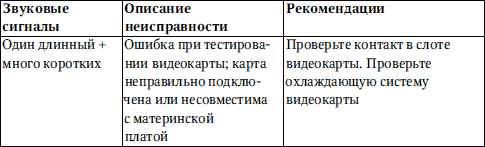 Таблица 1.1. Звуковые сигналы AwardBIOS
