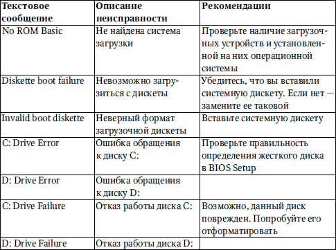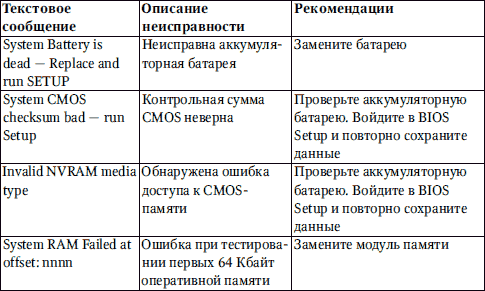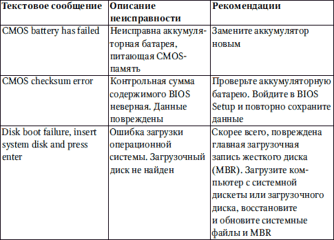 Появление текстовых сообщений в процессе тестирования системы – еще один вариант отслеживания возникшей неисправности. Вместе со звуковыми сигналами он позволяет эффективно отслеживать и определять практически все неисправности.