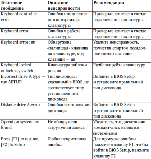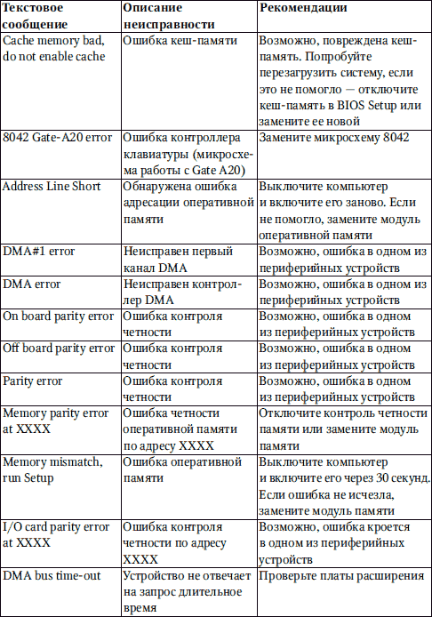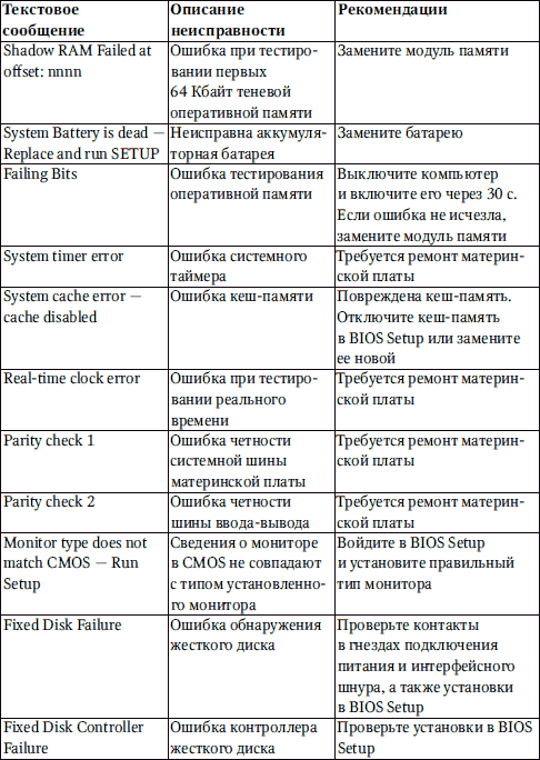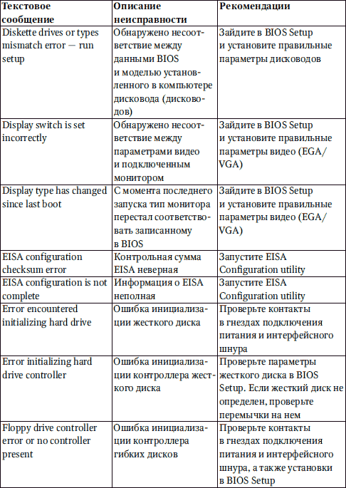 В табл. 1.4–1.6 приведены возможные варианты сообщений BIOS разных производителей.