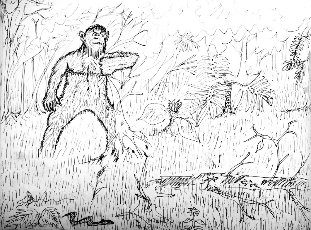 Но главное событие дня не это. Ерёма подстрелил странного зверя. Вернее, подранил, и тот с пронзительным криком ускакал в чащу. По его словам, зверюга была ростом с человека и покрыта рыжей шерстью. Но не медведь или рысь. Напоминала большую обезьяну.
