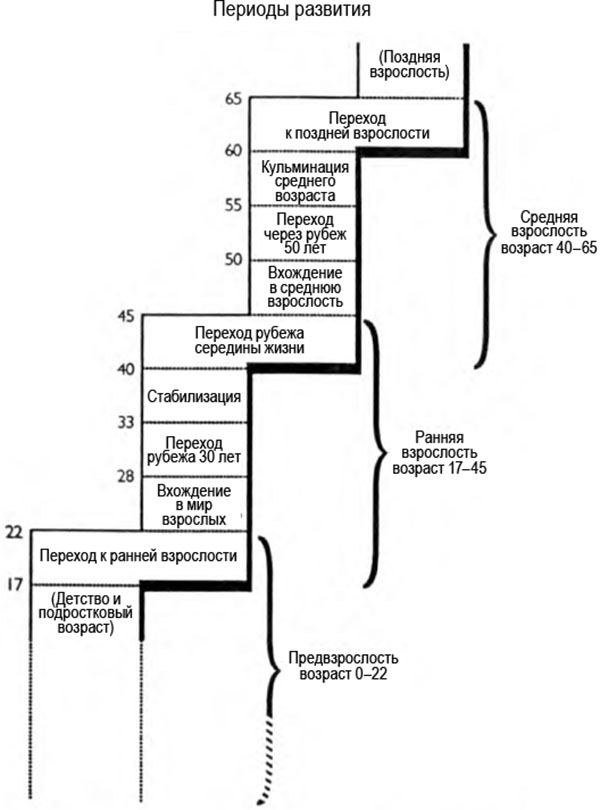 Рис. 1. Периоды развития в раннем и среднем зрелом возрасте (Nemiroff, Colarusso, 1985)