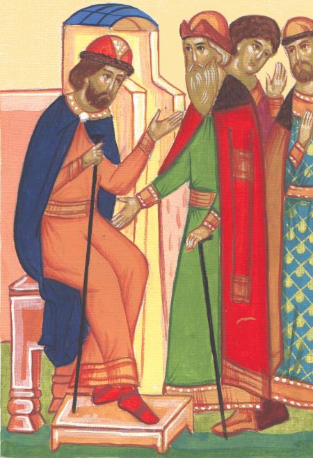 Но вот подошли к концу дни святого Владимира, тяжело занемог князь. А тут и давние враги – печенеги ратью пошли на Русь. Призвал князь к себе Бориса, дал ему большую дружину и послал против них. Выступил Борис в поход, но так и не встретил врагов – бежали печенеги.
