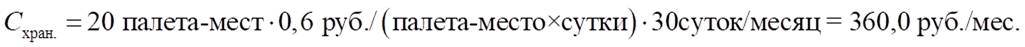 1. Стоимость услуг хранения (Схран.) на складе общего пользования за месяц согласно зависимости (1.2) и исходным данным производственной задачи составит: