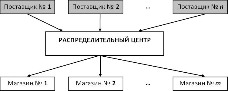 1. Распределительный центр не может быть создан в товаропроводящих сетях по распространению скоропортящихся товаров. Данная предпосылка обусловлена объективной причиной, заключающейся в том, что на выполнение любой операций, а тем более комплекса операций требуется некоторое количество времени. Так, в нашем случае, если продолжительность выполнения операций по продвижению товара через распределительный центр превышает (по разным оценкам и товарам) 20–50% срока его хранения, то данные товарные позиции должны продвигаться напрямую от поставщика в точки розничной торговли.