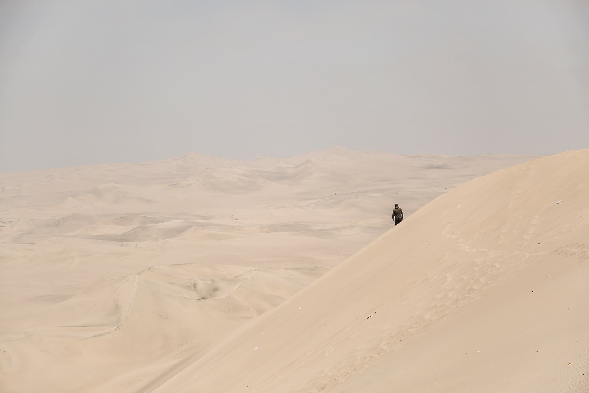 В знойном мареве пустыни, как мираж, появляется силуэт шагающей, словно заводная, фигурки.