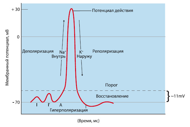 Рис. 1.2. Потенциал действия нервной клетки