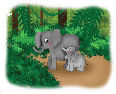 – Mamá dijo que una mamá elefante y su bebé elefante vivían en la finca al lado de nuestra casa. Habíamos mirado juntos una foto de una mamá elefante con sus dos hijos, así que estaba impaciente por conocer a estos grandes animales.
