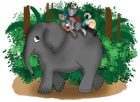 – Presenté a mi familia a Meena y a su mamá y, antes de que nos diéramos cuenta, Mamá Elefante había sacudido a una asombrada Cara alrededor de su cintura con su trompa y la había colocado suavemente sobre su enorme espalda.
