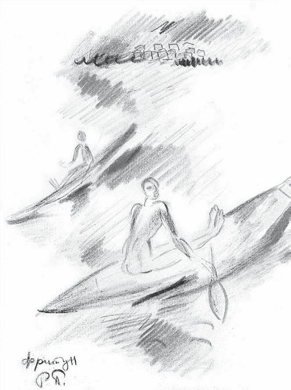 В колониальной Африке Петрович – тот самый белый человек в белом костюме и в неизменном белом пробковом шлеме, окружённый чёрными помощниками, проводниками и носильщиками, безмерно страдающий от жары, сжигаемый местной едой и напитками, подтрунивающий над местными жителями и их французским, скупающий у них украшения и ритуальные маски. Но покидает он эти места, будто одержимый любовным недугом, с каким-то совсем новым пониманием, с горечью разъединения и ощущением внутреннего разрыва. И кажется, что он уже не просто повторяет, а примеряет к себе слова своего африканского друга, пожилого Вюйе, услышанные им в начале путешествия: «Всё, что во мне есть молодого, – это суданец, а то, что старо, – парижанин». А в одном из экземпляров вышедшей весной 1930-го книги «Африка», который он подарит другу, Петрович на оборотах шмуцтитулов оставит десяток чудесных карандашных рисунков, где поэзия чёрного человечества вновь им пережита и передана нежнейшими тонами.