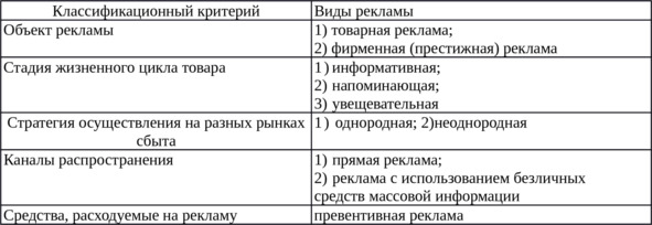 Существует несколько подходов к классификации рекламы исходя из различных критериев (табл. 1.1).