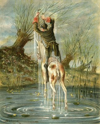 Я крепко сжал ногами благородное животное, схватился свободной правой рукой за собственную косу и – благополучно вытащил себя вместе с лошадью из трясины на берег. Затем мы легкой рысцой продолжали путь домой. Теперь вы не будете уже сомневаться в моей тогдашней силе и крепости!