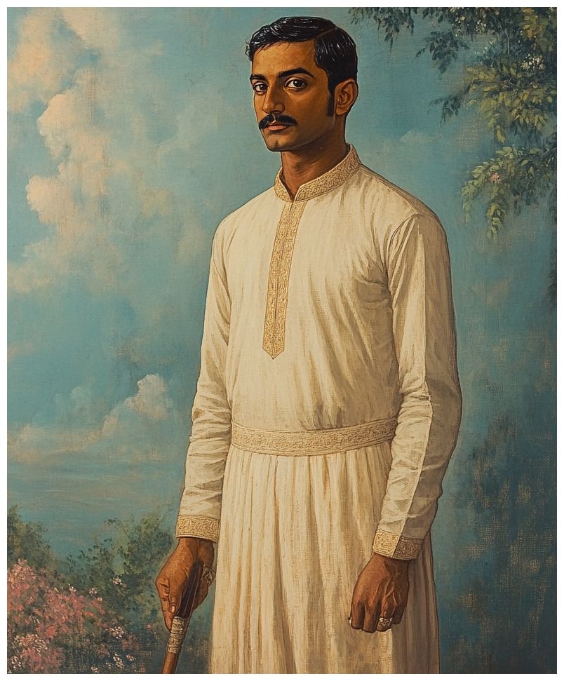 В назначенный день Мохендро, придя с занятий, попросил мать достать ему шелковую рубашку и дхоти из даккского муслина.