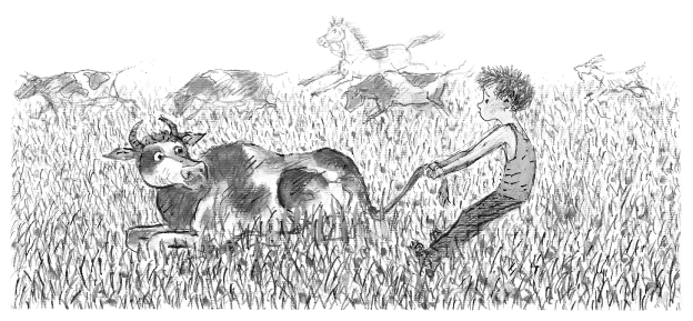 Гришка по деревне грустно шагал, думал, как сочинить сказку. «Наверно, я совсем бестолковый. Неспособный, наверно. Ох, тяжело…»