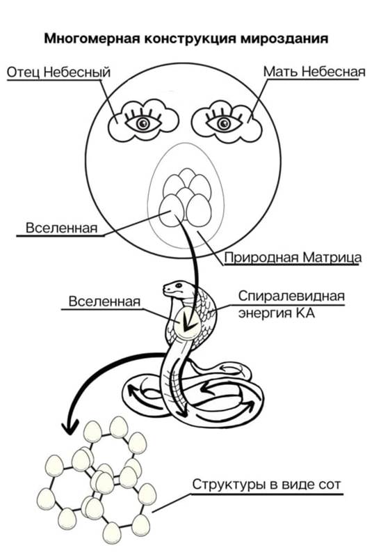 3.15.11. Когда приходит время, Природная матрица рождает эти "яйца – вселенные" и они рождаются в другую часть Вселенского Лона. Их спиралевидная энергия выстраивает там в виде сот, то есть ткёт там полотно Мироздания, где живут вселенные, галактики, созвездия и планеты.