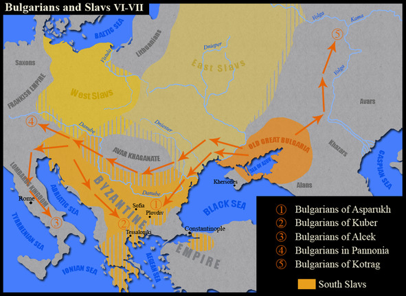 После смерти хана Кубрата*, пятеро его сыновей не исполнив завет отца быть сплочёнными, разделили болгарскую орду*** и каждый со своим племенем избрал свой путь. Самый младший сын Кубрата, по словам Феофана исповедника: «…другой, пришедши в Пентаполис при Равенне, покорился царям христианским» [1,2].