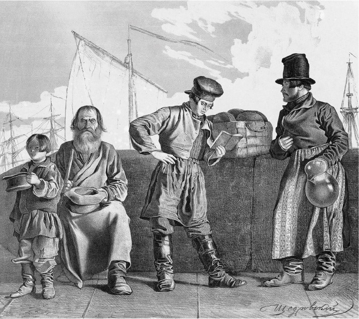 Игнатий Щедровский. Чтец на набережной, из книги Щедровского «Вот наши! С натуры», 1845