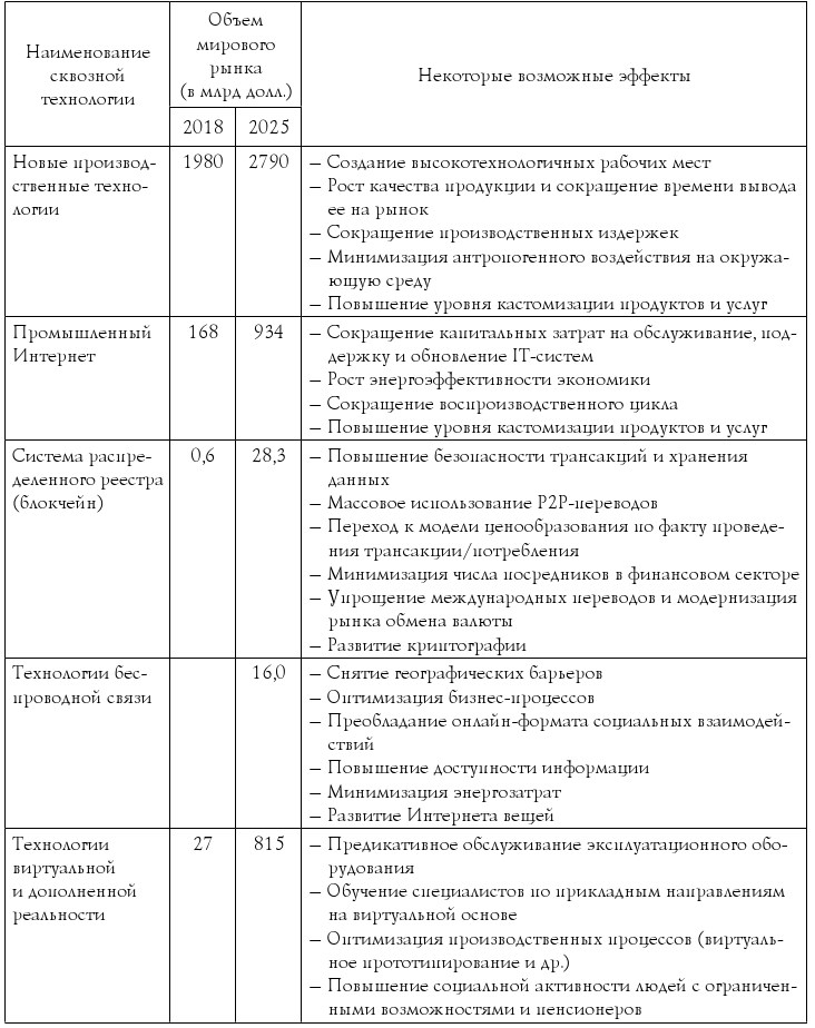 Таблица 1.2. Объемы мировых рынков, формируемые интегральными технологиями, и возможные эффекты от их применения