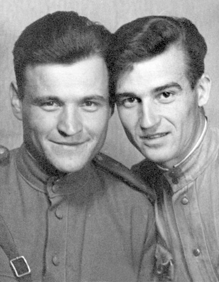 Г. Паушкин (справа) с командиром роты связи. 1943