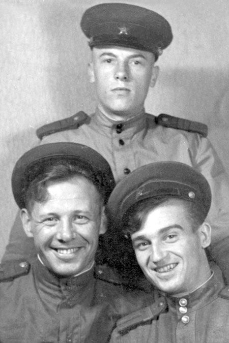С однополчанами (июнь, 1945). Г. Паушкин в первом ряду, справа. (Фотографии публикуются впервые.)